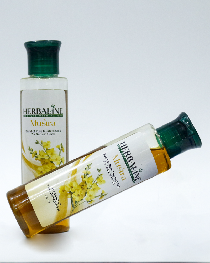 Herbaline Mustra Herbal Oil combines the richness of mustard oil with therapeutic herbs known for their scalp-purifying and nourishing properties. It gently removes dandruff, soothes dry and itchy scalp, and improves overall hair texture. Regular use promotes thicker, healthier hair while maintaining scalp balance. Its organic formula ensures your scalp remains fresh, clean, and hydrated — without harsh chemicals.